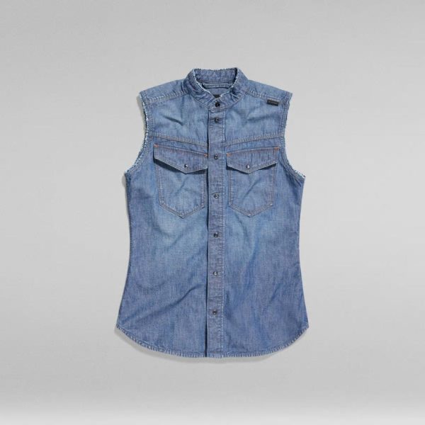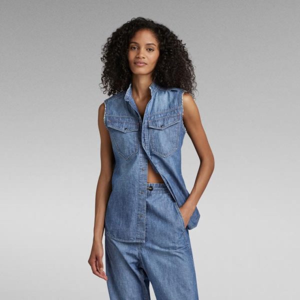 Dames Premium Slim Mouwloos Denim Shirt Faded Ionic Blue | G-Star RAW Overhemden & Blouses