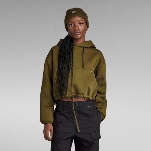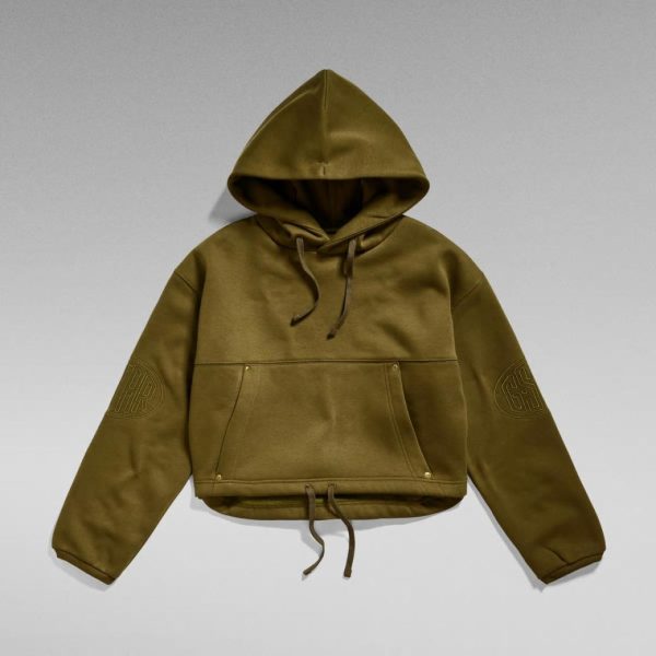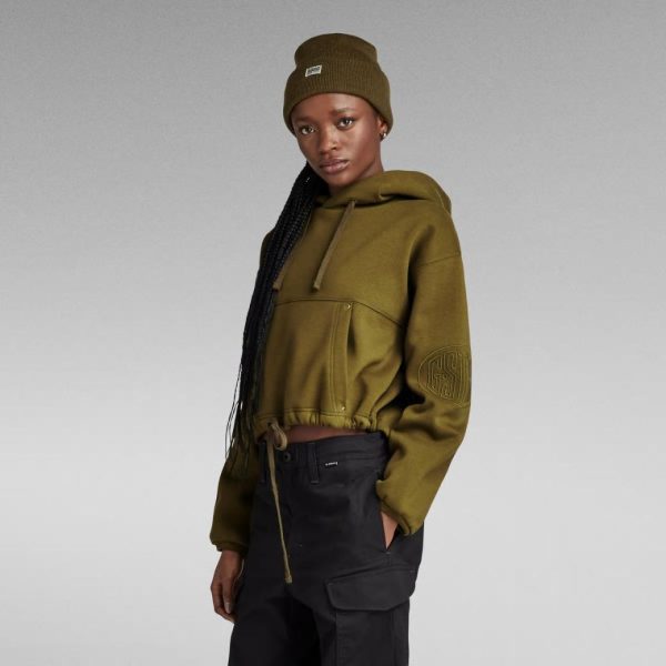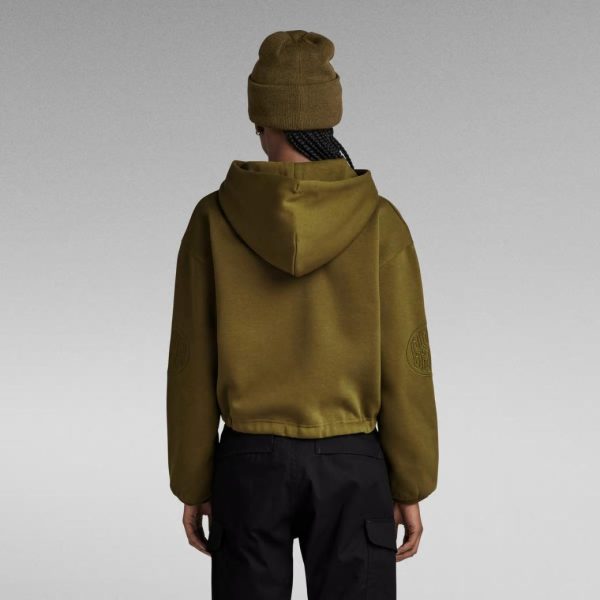 Dames Sleeve Graphic Cropped Loose Hoodie Dark Olive | G-Star RAW Sweaters