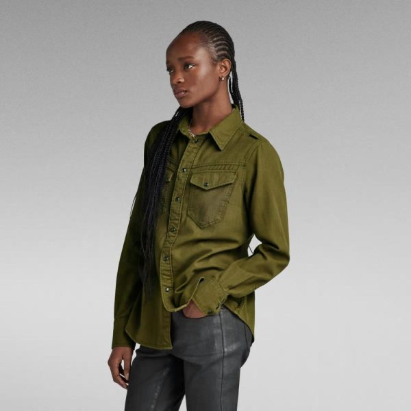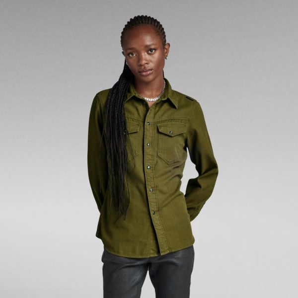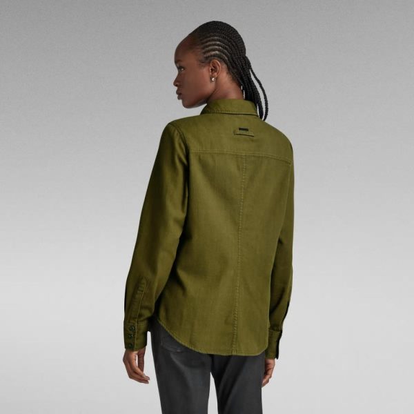 Dames Slim Shirt Dark Olive Garment Dyed | G-Star RAW Overhemden & Blouses