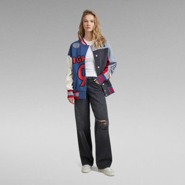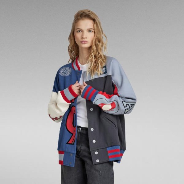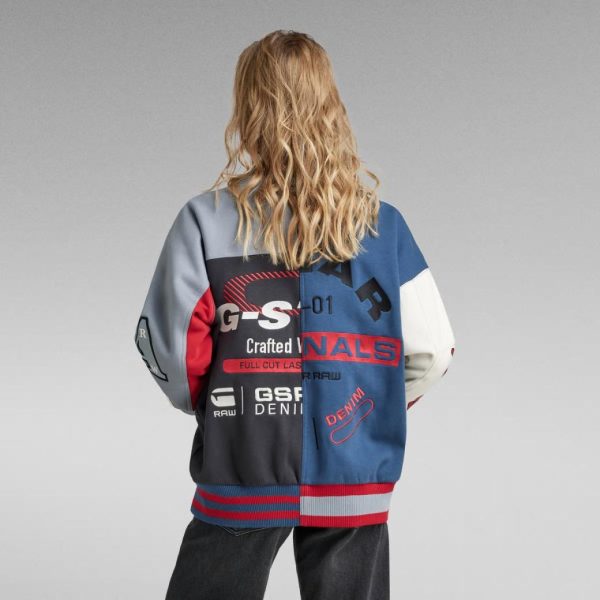 Dames Varsity Bomber Loose Sweater Rank Blue Multicolor Block | G-Star RAW Sweaters