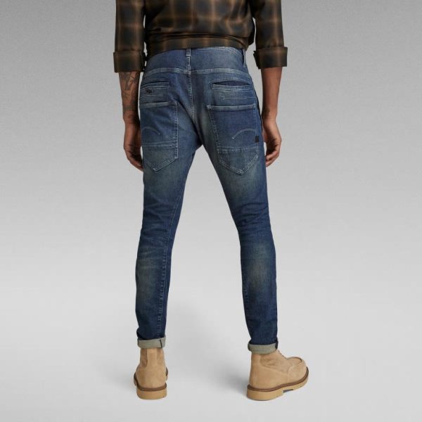 Achter: verlaagde achterzakken met smalle bieszakken daarboven, één met knoop