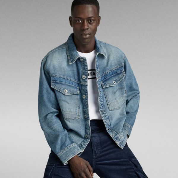 G-Star RAW label achterkant, gemaakt van een papiersoort met de uitstraling van leder